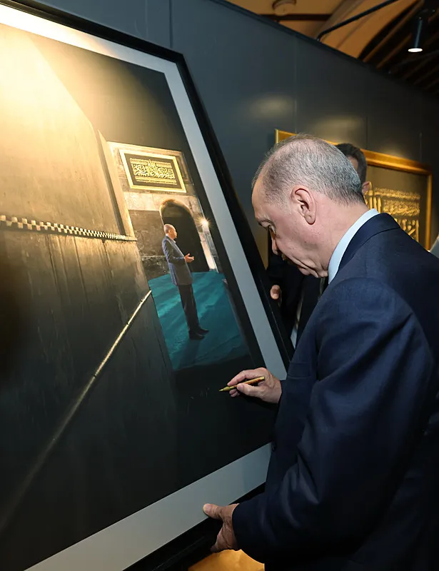 Cumhurbaşkanlığı Millet Kütüphanesi Davet Kabul Salonu’ndaki sergiyi gezen Başkan Erdoğan, fotoğraflar hakkında bilgi aldı.
